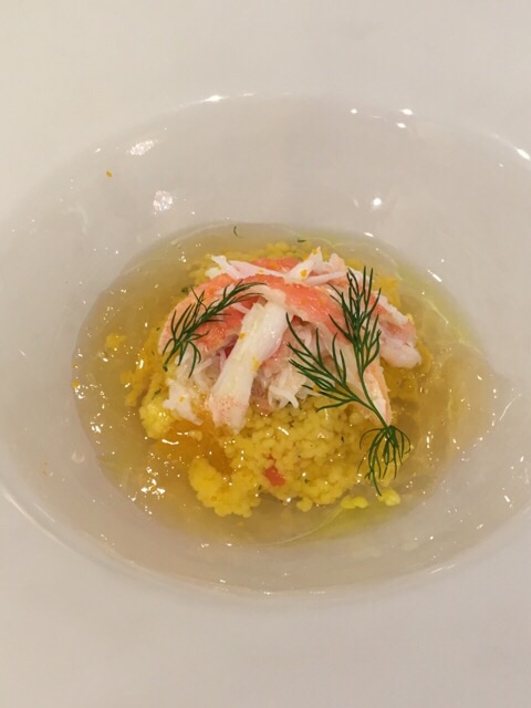 ちぢみほうれん草のクレーマ サフランのソース