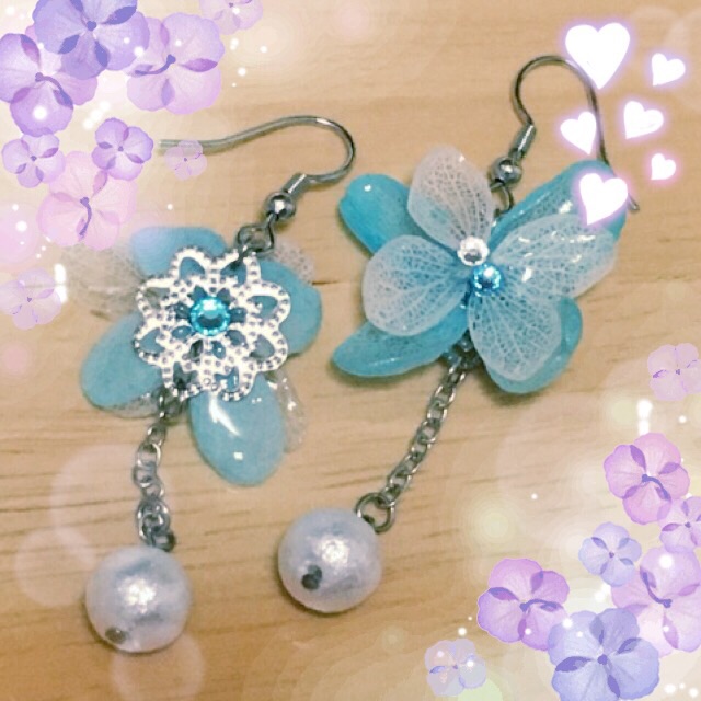 夏っぽいブルーフラワーピアス