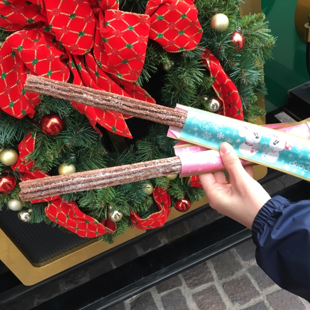 食べ歩きはポテトのチュロス?(いももちみたいなの)とアップルシナモンドリンク