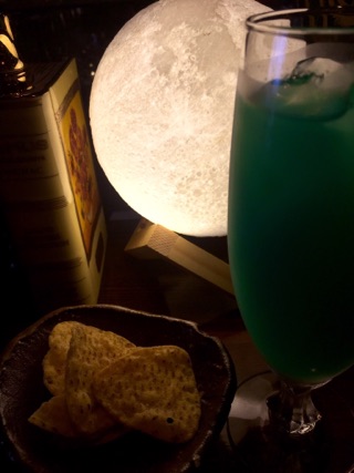 ・お酒が出来るまで時間があるので他のお酒をオーダー。ウイスキートゥディを頼むも、時節柄ホットの材料を切らしていて(当たり前だよ…)別のカクテルを頂く。そしてちょうどお月様のライト前でテンションが上がる。