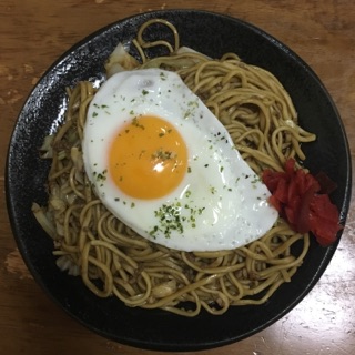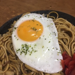 ・目玉焼きと福神漬けとソースじゃばじゃばで最高に美味しい!