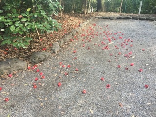 ・大きな椿の木から椿が落ちてて、厨二病なのでパチリ