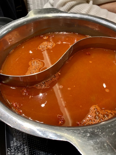火鍋なので赤い。