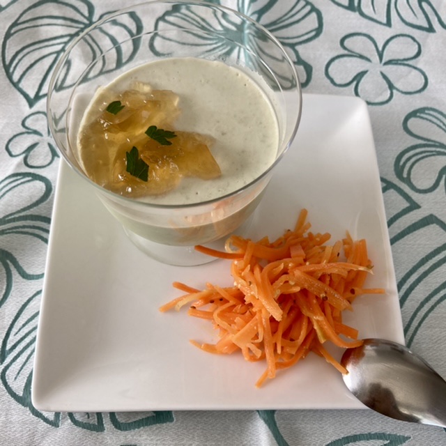 グリーンピースのムース コンソメジュレ添え