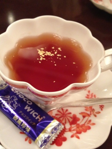 ・ロビーでまったりとお茶タイム。しかも金箔入り。