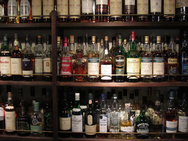 ・棚いっぱいのウイスキー。圧巻。